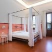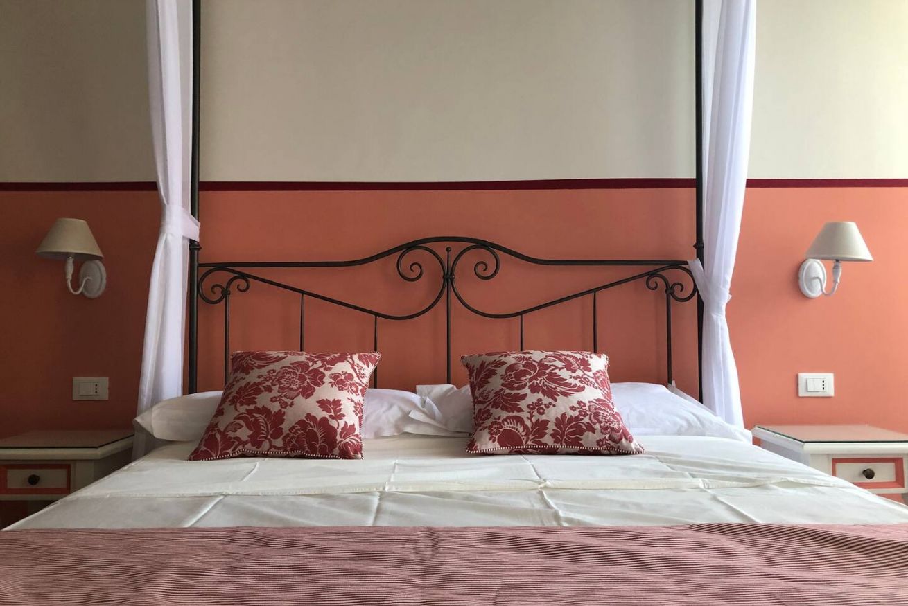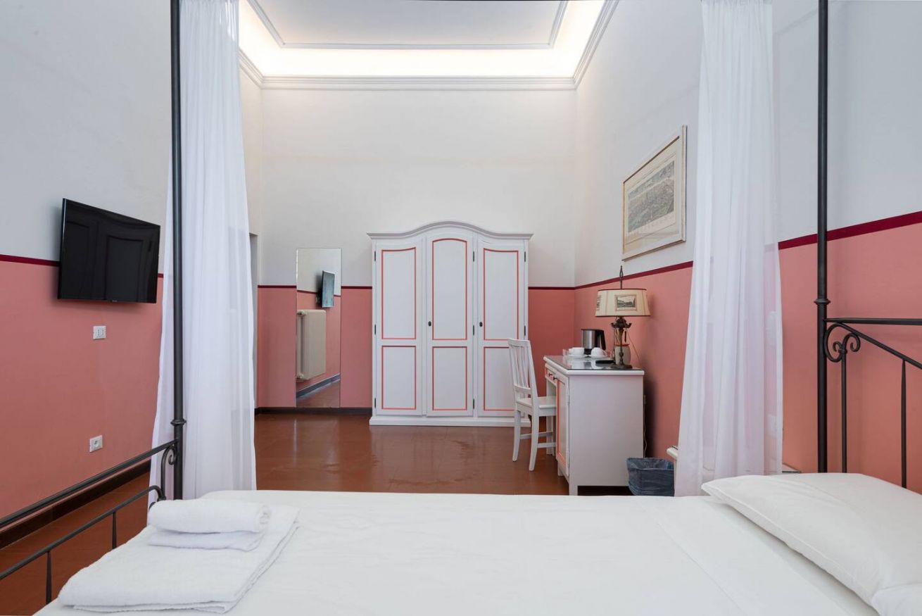 - Una camera matrimoniale elegante con letto a baldacchino, affacciata su una strada tranquilla per garantire un soggiorno sereno e rilassante.