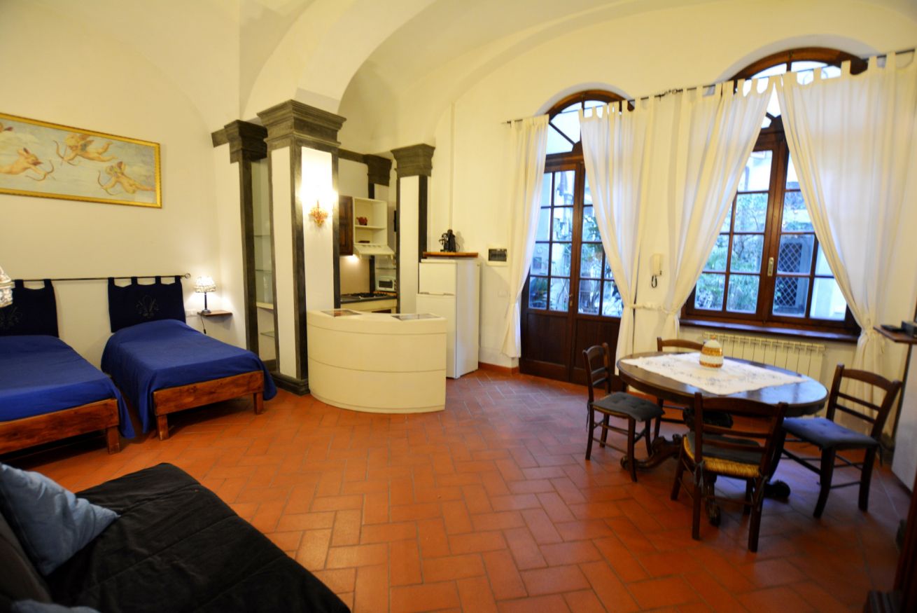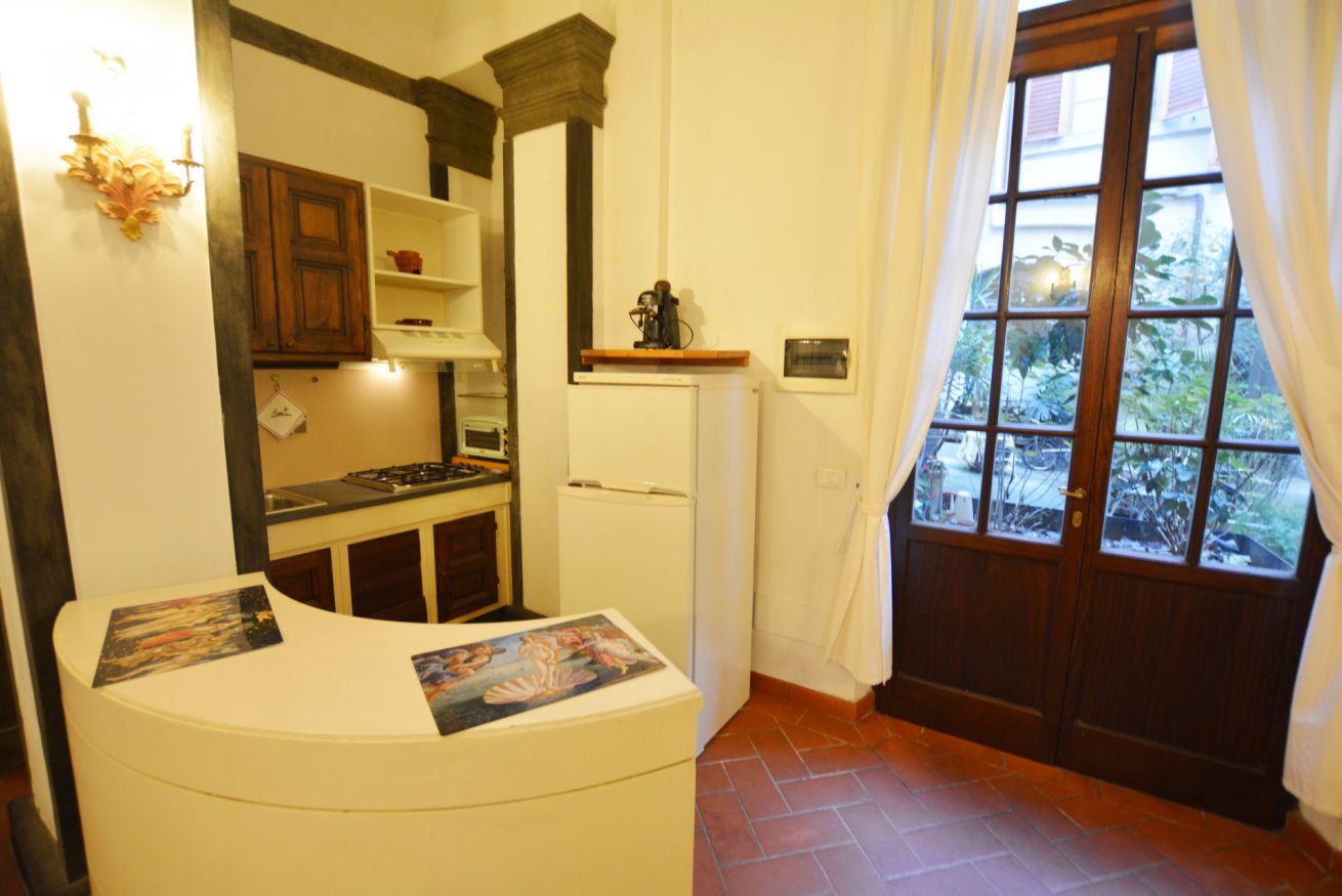 In Oltrarno area characteristic and unique loft-style studio apartment on the ground floor, with entrance through an antique courtyard.