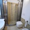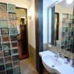 Bathroom: it has a shower stall with mosaics and a washing machine.
