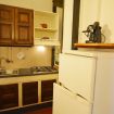 Living/dining area: the apartment has a living/dining area with an antique table for 4 people, tv, cooking corner with 4 burners, mw and fridge.