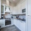 Fully equipped kitchenette: 4-burner stove, dishwasher, oven, microwave, refrigerator, toaster, and kettle.