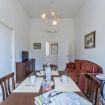 Spacious living room with sofa, TV, and dining table for 4/6 people.
