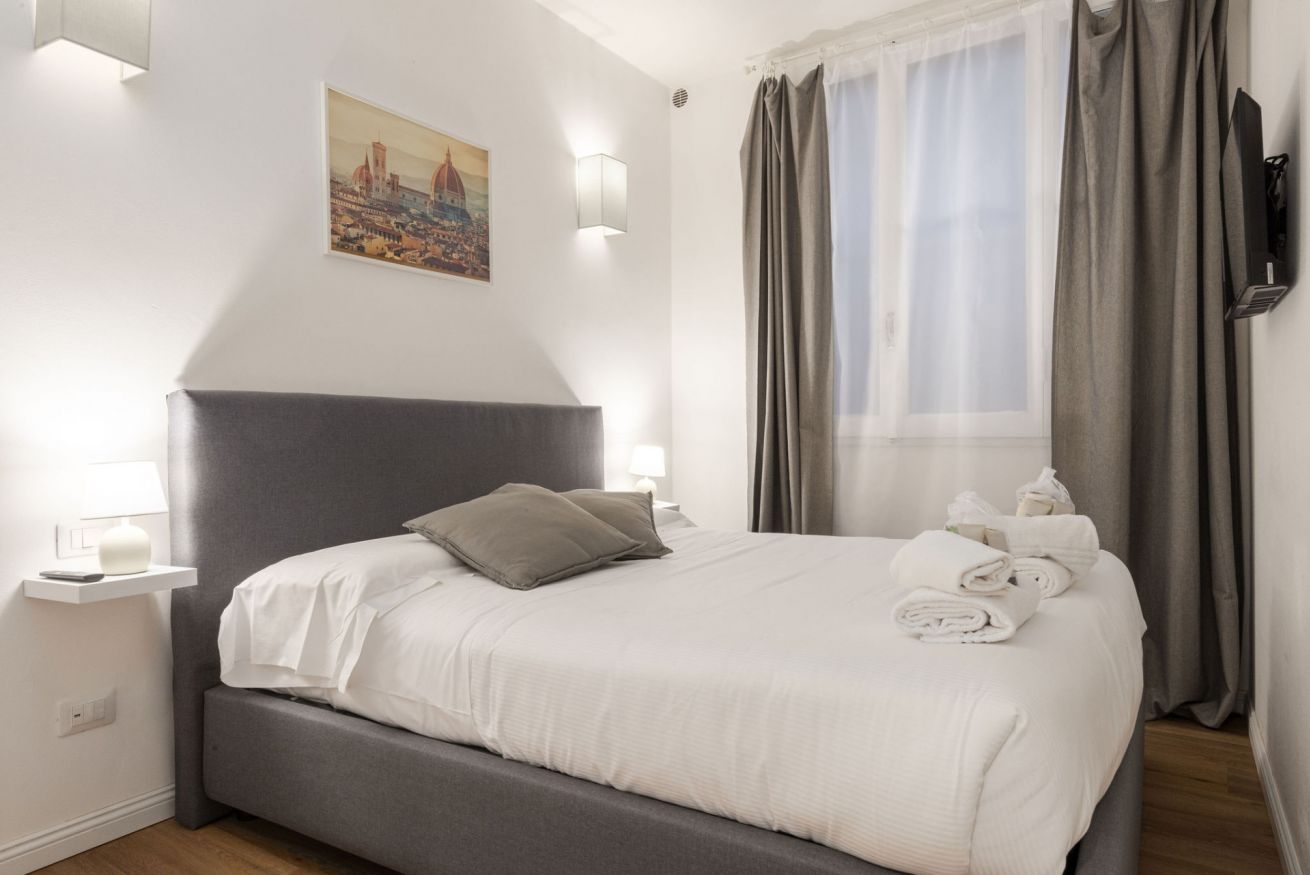 Located on Via dei Renai, a quiet yet central area of Florence, the apartment is just steps from the city’s main attractions, restaurants, and shops.